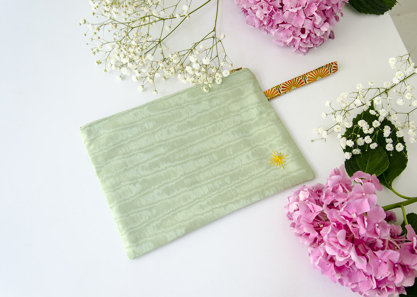 Adoptez un style élégant et effortless avec cette grande trousse. Ses couleurs pastel, le charme et la finesse de la moire perdent le regard dans ses ondes. ONJA sera idéal dans le sac au quotidien ou avec soi en voyage, pour ne concentrer que ses essentiels à l'intérieur.
