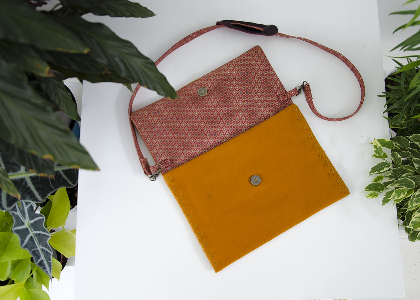 Rohy est né après la petite trouvaille d'un lot de fil à broder. Les motifs créés avec ce fil, en contraste avec les tissus aux couleurs vives, s'inspirent de la reliure japonaise. C'est la touche colorée et élégante qui donnera du peps à vos looks jour et nuit. Elle contiendra facilement tous vos indispensables.